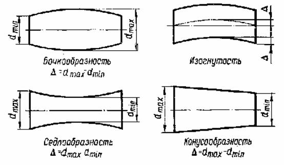 Рис. 7.6. Отклонения формы цилиндрических поверхностей в продольных сечениях