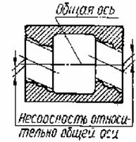 Точность взаимного расположения поверхностей. К отклонениям взаимного расположения по ГОСТ 24642-81 относятся непараллельность, неперпендикулярность (для плоскостей); несоосность, радиальное и торцовое биение (для цилиндрических поверхностей); перекос осей и отклонение от правильного расположения пересекающихся и скрещивающихся осей и др. (рис. 7.7)