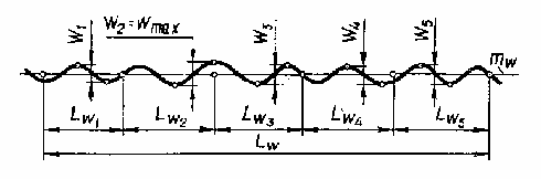 Высота волнистости Wz - среднее арифметическое из пяти ее значений, определенных по длине участка измерения LW (рис. 7.9, а):