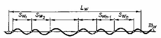 Средний шаг волнистости SW - среднее значение расстояний Swi между одноименными сторонами соседних волн, измеренных по средней линии профиля mW (рис. 7.9, б):