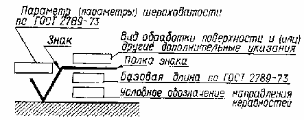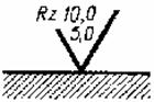 Несущая способность поверхности, кроме шероховатости, зависит также от вида обработки и направления неровностей. Все эти сведения приводятся при необходимости на чертежах с помощью специального знака (рис. 7.11, а). Значения параметра шероховатости по ГОСТ 2789-73 указывают в обозначении: для Ra - без символа (рис. 7.11, б), для остальных параметров - после соответствующего символа (рис. 7.11, в, г, д).