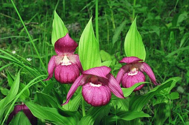 Многие виды включены в Красную книгу. Из грибов ежевик коралловидный, паутинник фиолетоый; лишайники – лобария легочная, уснея цветущая; покрытосемянные – вененин башмачок крупноцветковый (рис. 26) и венерин башмачок настоящий, минуарция Гельма (рис. 27), минуарция Крашенинникова (рис. 28), надбородник безлистный, неоттианте клобучковая, пыльцеголовник длиннолистный, пыльцеголовник красный, чина Литвинова (рис. 29), ятрышкин обожженный (рис. 30), ятрышкин шлемоносный. (рис.11)