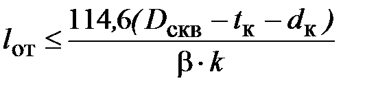Согласно производственным данным при сходе с ложка клина отбурочный набор, как правило, увеличивает угол искривления, который может превышать угол скоса ложка β в среднем в 1,5 раза. Поэтому в формуле (9.5) значение угла β следует умножать на коэффициент k, который может быть равен 1,2–2. При этом меньшее значение повышающего коэффициента k следует применять, если породы средней твердости и большее, если породы твердые.