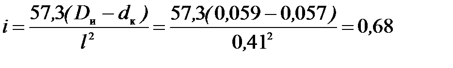 Пример 17. Рассчитать интенсивность искривления отклонителем ОБС-59 при установленном сменном ограничителе зазора (табл. 9.1), равного 5 мм.