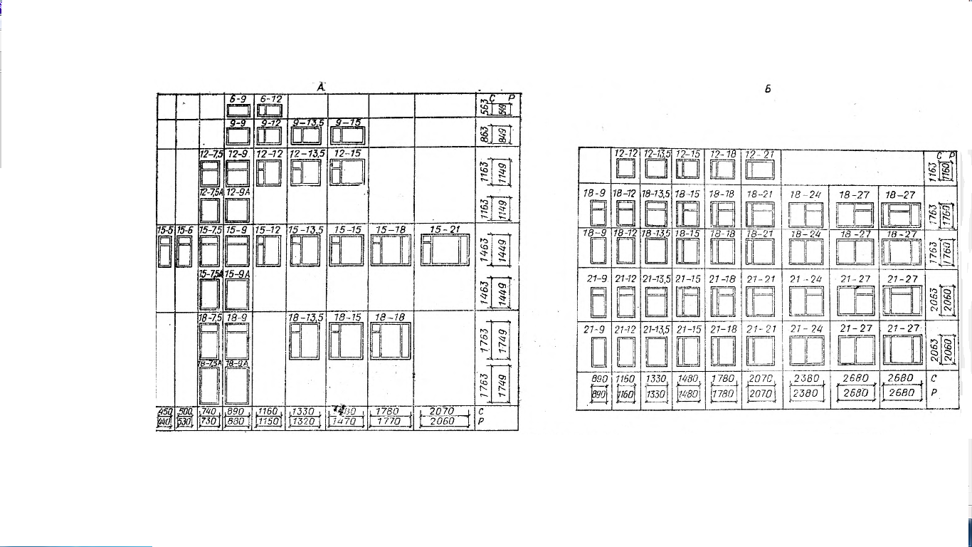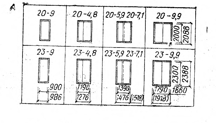 Размеры окон унифицированы. Высоту окна обычно принимают на 1100-1300 мм меньше высоты этажа, а ширину одностворчатых – не менее 600 мм, двухстворчатых – 900, 1100, 1300 мм, трехстворчатых – 1600-1800 мм.