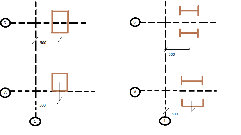 4. В любом каркасе торцевые колонны по отношению крайней поперечной разбивочной оси имеют привязку 500 мм.