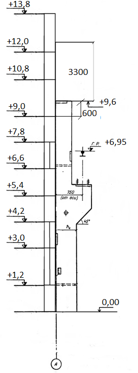 2. Обозначить отметку верха колонны, головки рельса (при наличии мостового крана)