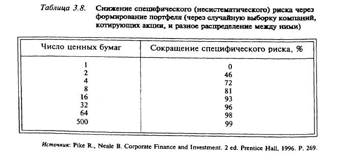 Значительное сокращение специфического риска может быть достигнуто формированием небольшого портфеля (порядка 30 различных ценных бумаг).