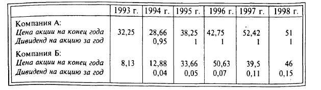 10. По акциям компаний А и Б имеются следующие данные (в долл. США):