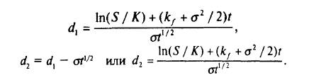 — текущая оценка (РV) цены исполнения при непрерывном дисконтировании (см. Приложение 1); kf — ставка процента (безрисковая доходность); t — срок действия опциона, т.е. число лет между сегодняшним моментом и моментом исполнения опциона; е — основание логарифма, е = 2,71828;