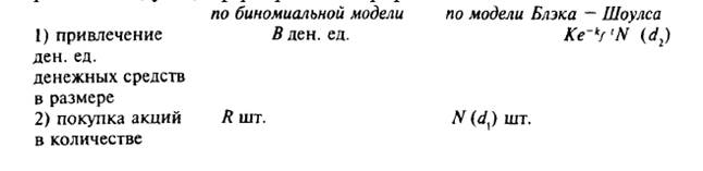 Идея модели Блэка — Шоулса также сводится к формированию портфеля путем покупки акций и привлечения денежных средств. Аналогом покупки колл-опциона рассматривается следующее формирование портфеля: