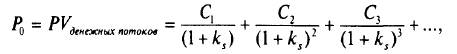 Рыночная оценка всего капитала должна равняться рыночной оценке активов, способных генерировать денежные потоки всем владельцам капитала. Наибольшее признание получил подход на основе метода дисконтированных денежных потоков. Под денежным потоком подразумевается чистый денежный поток на весь капитал (РСГР), ставка дисконтирования —стоимость капитала корпорации (как средневзвешенная — МАСС).