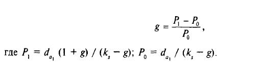 Выражение ожидаемой доходности по модели Гордона показывает две постоянные компоненты доходности: 1) дивидендную доходность da1 / Р0 (аналогична купонной, текущей доходности по облигации); 2) ожидаемый постоянный темп роста g. Рост денежного потока вызывает рост цены акции и может интерпретироваться по модели Гордона как доходность роста капитала