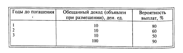 4. Инвестор выбирает между 3-летней государственной облигацией с 10%-и купонной ставкой (при номинале 100 ден. ед. и с выплатой купонного дохода в конце каждого года) и облигацией компании "Чудо", срок до погашения которой также 3 года. На основе аналитических оценок по компании "Чудо" инвестор рассчитал вероятность получения 10%-го купонного дохода (компания может выплатить обещанный доход не полностью или выплатить купонный доход, но не погасить облигацию):