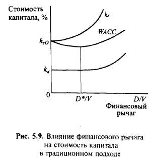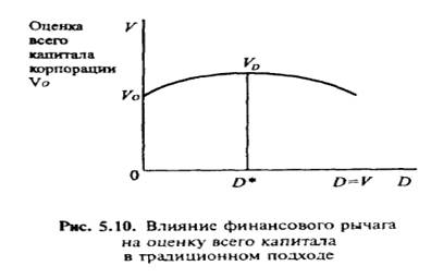 Традиционный подход предполагает, что корпорация, привлекающая заемный капитал (до определенного уровня), рынком оценивается выше, чем фирма без заемных средств долгосрочного финансирования.
