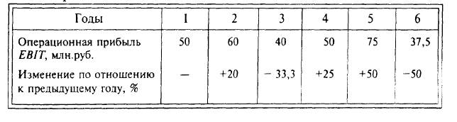 2. Компания ХУ имела за рассматриваемый промежуток времени следующие значения операционной прибыли по годам: