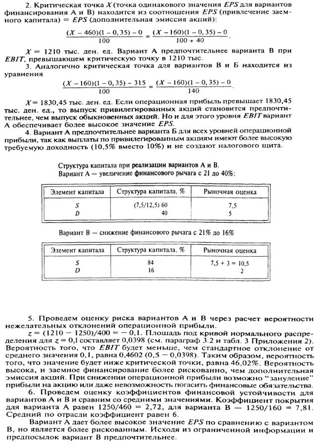 вариант А — привлечь заемный капитал в размере 3 млн. ден. ед. под 10% годовых (т.е. увеличить финансовый рычаг);