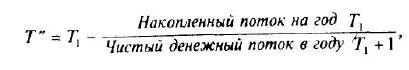 Срок окупаемости превышает то число лет, после которого накопленные потоки меняют знак с "минуса" на "плюс". Для проекта А срок окупаемости больше двух лет и меньше трех. Для точного расчета срока окупаемости используется формула