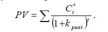 Приведенная к начальному моменту оценка денежных потоков по проекту при использовании расчетной реальной процентной ставки должна считаться следующим образом: