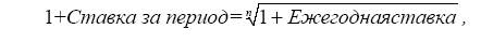 где n - число периодов за год. В нашем примере n = 4. Корень четвертой степени из 1,36 равен 1,0799, и ставка за квартал составит в рассматриваемом примере 7,99%.