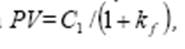 где κf - альтернативная стоимость капитала с учетом гарантированности результата (ставка дисконтирования). Первый метод предполагает включение оценки риска в числитель формулы PV, т.е. корректировку значения С1, а в качестве ставки дисконтирования использование безрисковой процентной ставки. Второй метод предполагает включение оценки риска в ставку дисконтирования, т.е. в знаменатель формулы текущей оценки PV. Следует подчеркнуть, что учет риска и в денежном потоке, и в ставке дисконтирования приведет к двойному счету, что недопустимо.