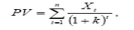 Формула ЧДД (NPV) строится на разности текущей оценки будущих поступлений по проекту PV и инвестиционных затрат Со в текущем году. NPV=PV – C0. Текущая оценка для одногодичного проекта с гарантированным чистым денежным потоком С, равна