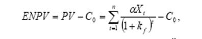 где α- коэффициент эквивалентности, отражающий отношение к риску субъекта, принимающего решение по проекту (например, финансового менеджера корпорации). Чем более для менеджера неприемлем риск, тем ближе к нулю значение α. Для проектов такого же риска, как и деятельность корпорации (среднего корпоративного риска), когда известна стоимость капитала и безрисковая доходность κf, можно оценить коэффициент эквивалентности.