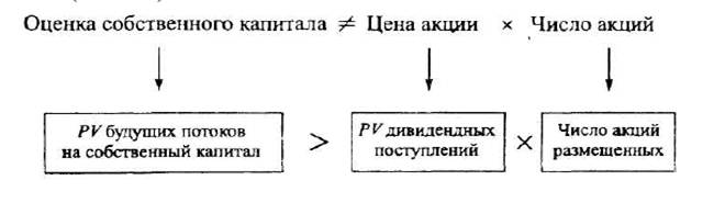 Возможность выбора финансовой стратегии (по амортизации, дивидендной политике). Если PV прогнозируемых денежных потоков превышает PV ожидаемых дивидендных выплат по сложившейся дивидендной политике, то при покупке компании денежные потоки могут быть увеличены для владельца капитала. Можно говорить о выгодности покупки контроля над компанией по сравнению с вариантом покупки отдельных акций. Получив контроль, можно реализовать выгоды, связанные с оценкой собственного капитала (см. гл. 4):