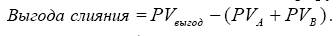 • Под выгодой слияния понимается текущая оценка будущих дополнительных денежных потоков, генерируемых в результате слияния: