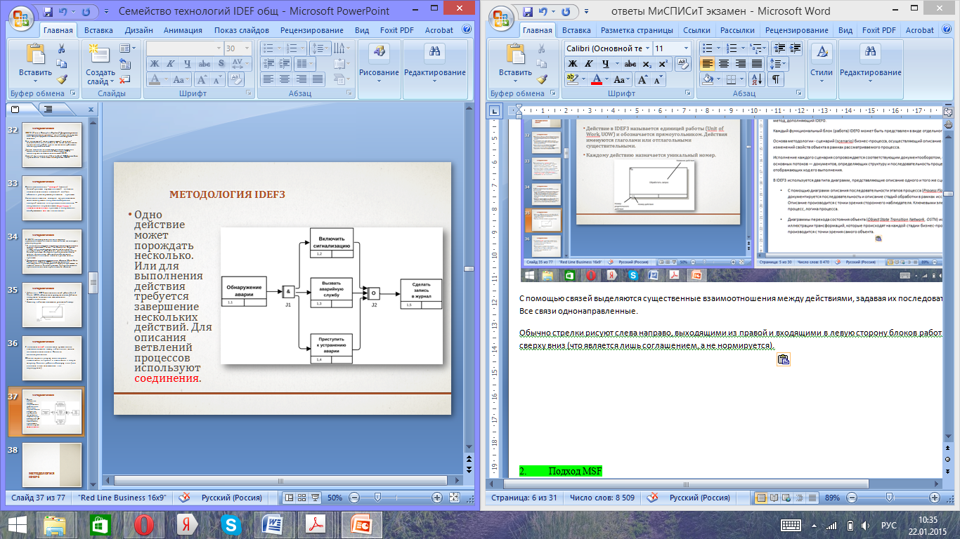 IDEF3 (Process Description Capture)– Документирование технологических процессов - данный метод используется для сбора информации о состоянии моделируемой системы.