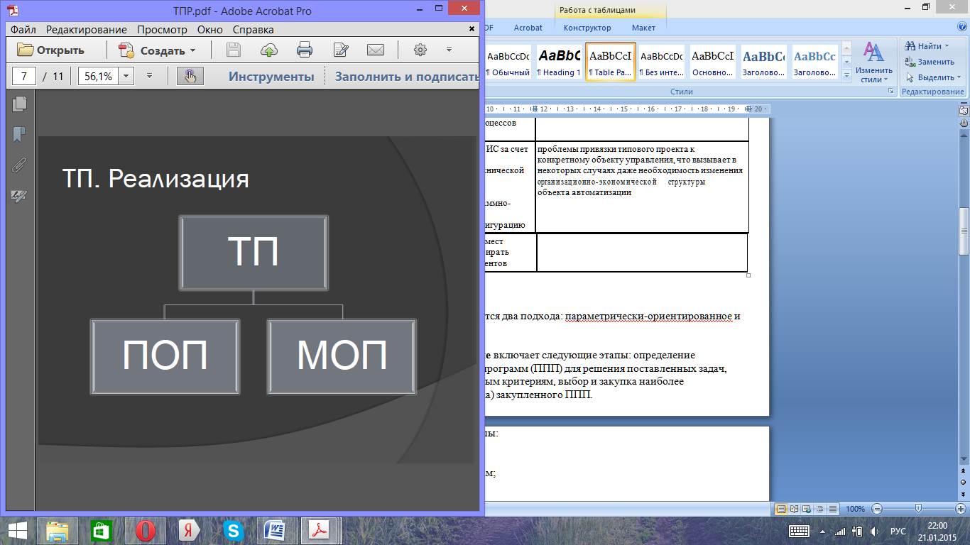 | Объектные ТПР Отраслевые проекты ИС | Комплексирование всех компонентов ИС за счет методологического единства и информационной, программной и технической совместимости. Открытость архитектуры – позволяет устанавливать ТПР на разных программно- технических платформах. Масштабируемость – допускает конфигурацию ИС для переменного числа рабочих мест. Конфигурируемость – позволяет выбирать необходимое подмножество компонентов. | Проблемы привязки типового проекта к конкретному объекту управления, что вызывает в некоторых случаях даже необходимость изменения организационно-экономической структуры объекта автоматизации. |