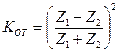 С увеличением разности в акустических жесткостях Z1 и Z2 двух сред возрастает и коэффициент отражения КОТ на границе раздела этих сред: