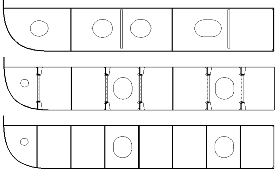 Рис. 2.9. Борт с поперечной системой набора и переборка со стойками