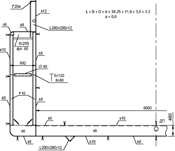 Рис. 5.24. Мидель-шпангоут сухогрузного лихтера