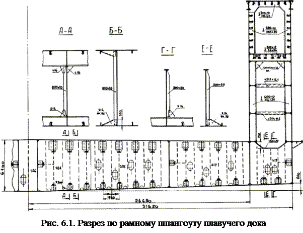 Рис. 6.2. Разрез по основному шпангоуту плавучего дока