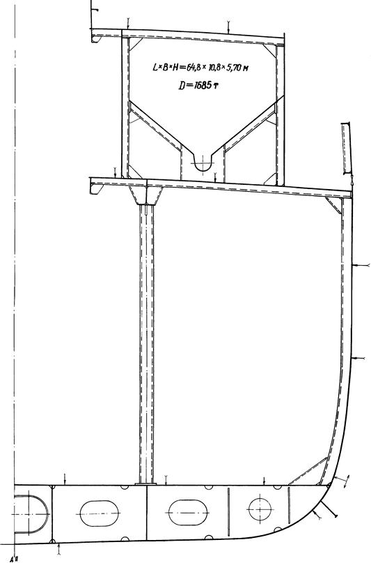 Рис. 6.20. Мидель-шпангоут рыбообрабатывающего судна /17/