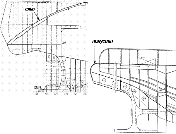 малых (для прибрежного лова) до больших морозильных (БМРТ) и супертраулеров длиной более 100 м (для океанского промысла). Для выборки трала корма траулера имеет специфичную форму с наклонным слипом или округлым полуслипом (рис. 6.17). Для повышения мореходности на волнении сейнеры и траулеры часто имеют высокий бак или седловатость палубы (рис. 6.18).