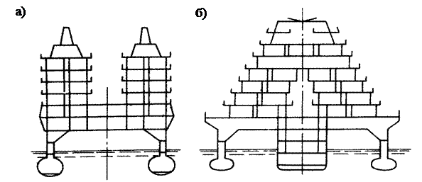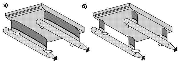 Рис. 8.8. Дуплус (а) и трисек (б)– типы двухкорпусных СМПВ