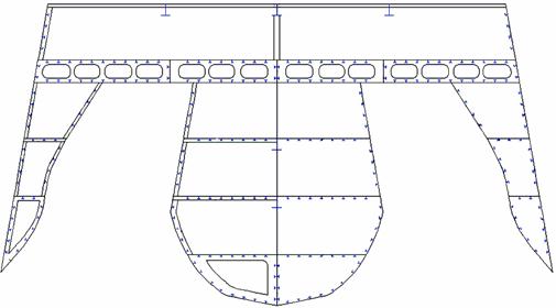 Рис. 8.11. Продольная система набора корпуса катамарана