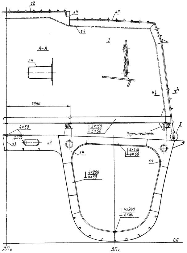 Рис. 8.13. Мидель-шпангоут речного пассажирского катамарана /16/