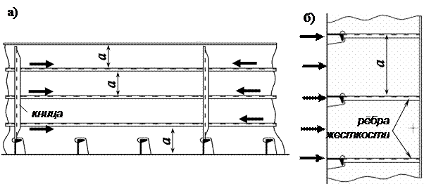 1) Рёбра жёсткости должны быть ориентированы по направлению наибольших сжимающих усилий (рис. 9.1). Это правило обеспечивает