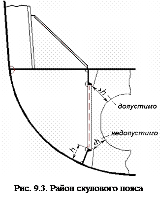 Высота шпигатов (голубниц) должна быть не более 20 % от высоты стенки, а ширина неподкреплённого участка обшивки (под шпигатом) – не более 15 толщин обшивки.