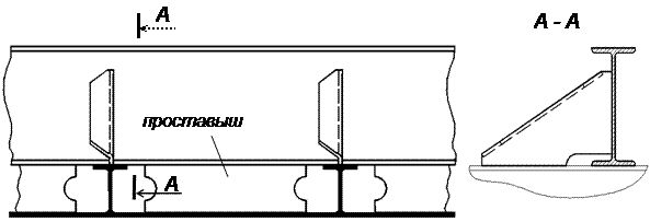 5) В местах действия сосредоточенных, ударных или вибрационных нагрузок, в районах опор рамной балки, а также при недостаточной высоте рамной балки (меньшей двух с половиной высот балок основного набора) узел пересечения балок должен подкрепляться планками - заделками