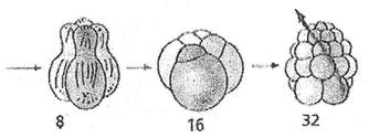 Задание 1. Рассмотреть рисунки радиального и спирального типов дробления зиготы на стадиях 2-32 бластомеров, бластулы и гаструлы.