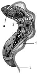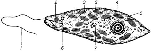 2.4. Трипаносома. Трипаносома в крови животных и человека образует ундулирующую мембрану. В основании жгутика располагается базальное тельце - кинетопласт.
