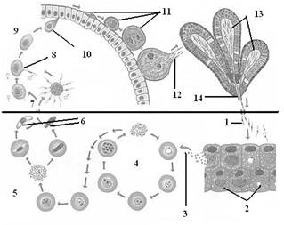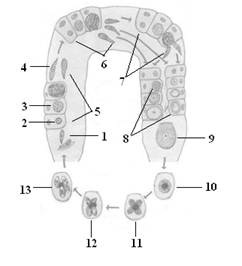 Задание 3. Ознакомиться с жизненным циклом кокцидий (на примере эймерии) и малярийного плазмодия по схемам, предварительно изучив материал учебника. Где необходимо, выполнить подписи к рисункам.