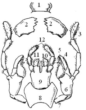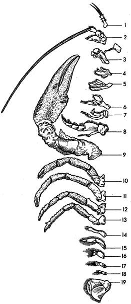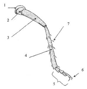 а) тазика, вертлуга, бедра, голени, лапки б) тазика, бедра, голени, лапки в) бедра, голени, лапки г) протоподита, экзоподита, эндоподита