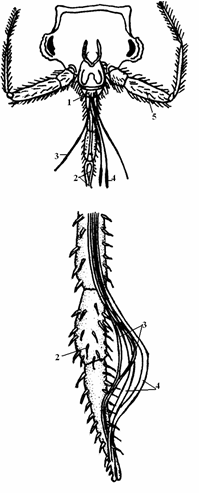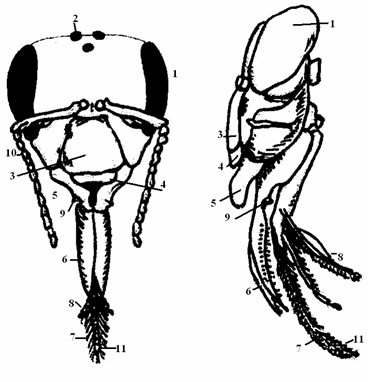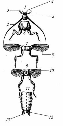 а) головы и сегментированного туловища (грудной и брюшной отделы не различимы)