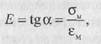 Как видно из диаграммы растяжения, на ее начальном участке до напряжений, соответствующих точке А, выполняется линейная зависимость между напряжением и деформацией, называемая законом Гука. Эта зависимость может быть определена величиной тангенса угла наклона кривой растяжения на ее начальном участке (до точки А), характеризующем упругие деформации материала. Коэффициент этой пропорциональности (Е) называется модулем упругости, или модулем Юнга: