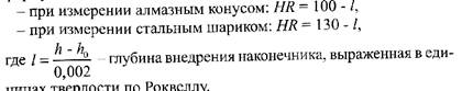 Твердость по Роквеллу (или число твердости НК} определяется разностью между глубиной внедрения Н конуса или шарика под полной нагрузкой Р и глубиной внедрения й0, вызванной предварительной нагрузкой Р() = \ ООН. Число твердости (НК) выражается в условных безразмерных единицах и определяется по следующим гЬоомулам: